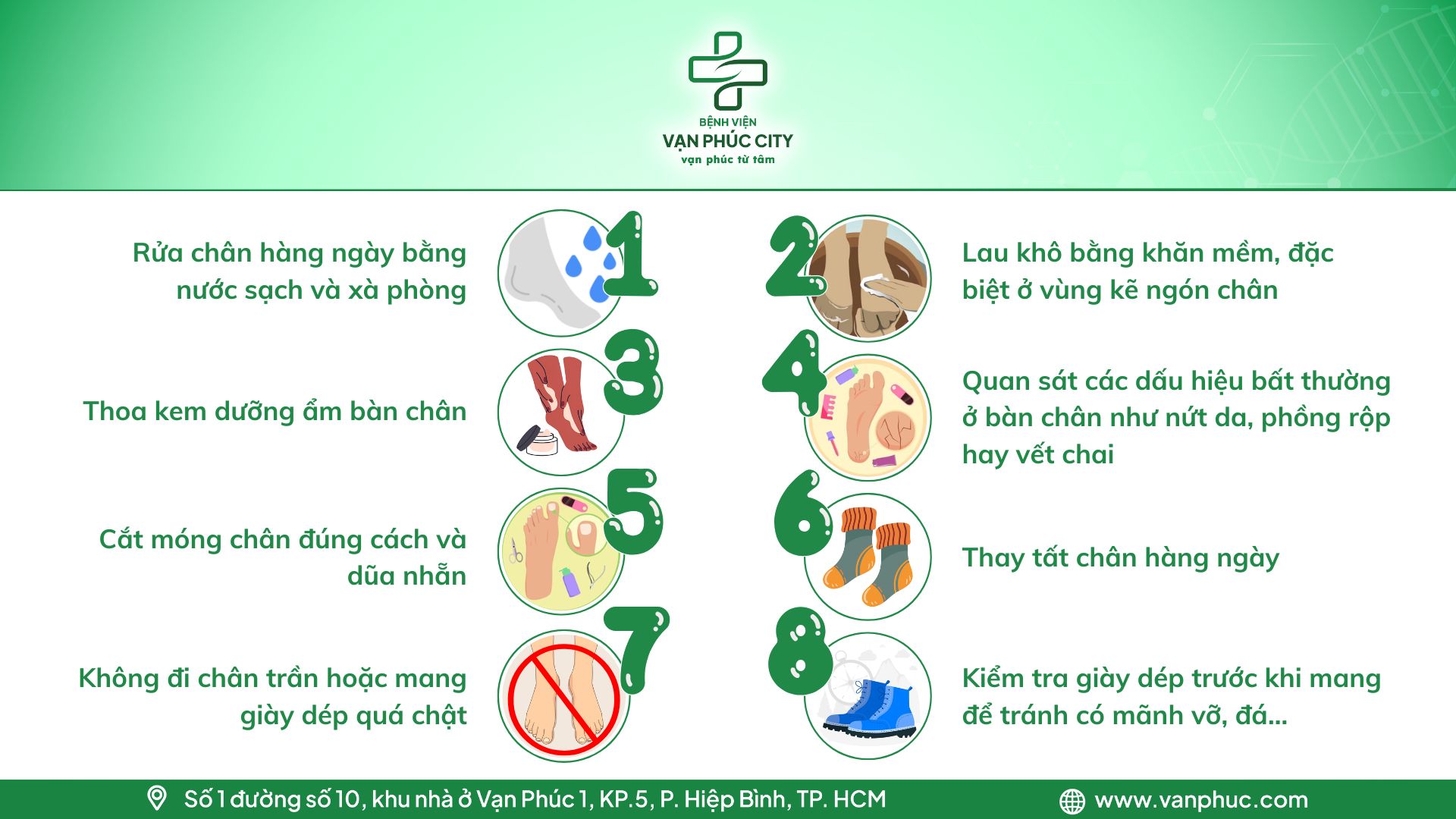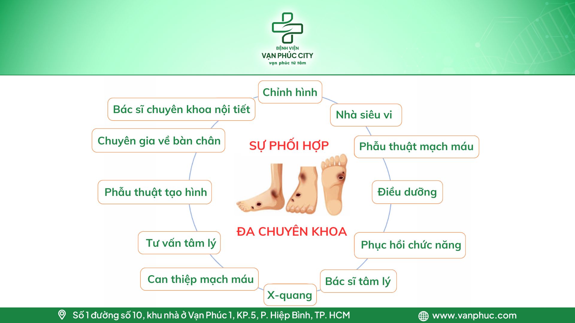 Nếu Quý khách hàng đang có mối lo ngại hoặc nghi ngờ đang gặp phải vấn đề về bàn chân do tiểu đường, hãy liên hệ ngay với Bệnh viện Vạn Phúc City để được tư vấn và hỗ trợ kịp thời!