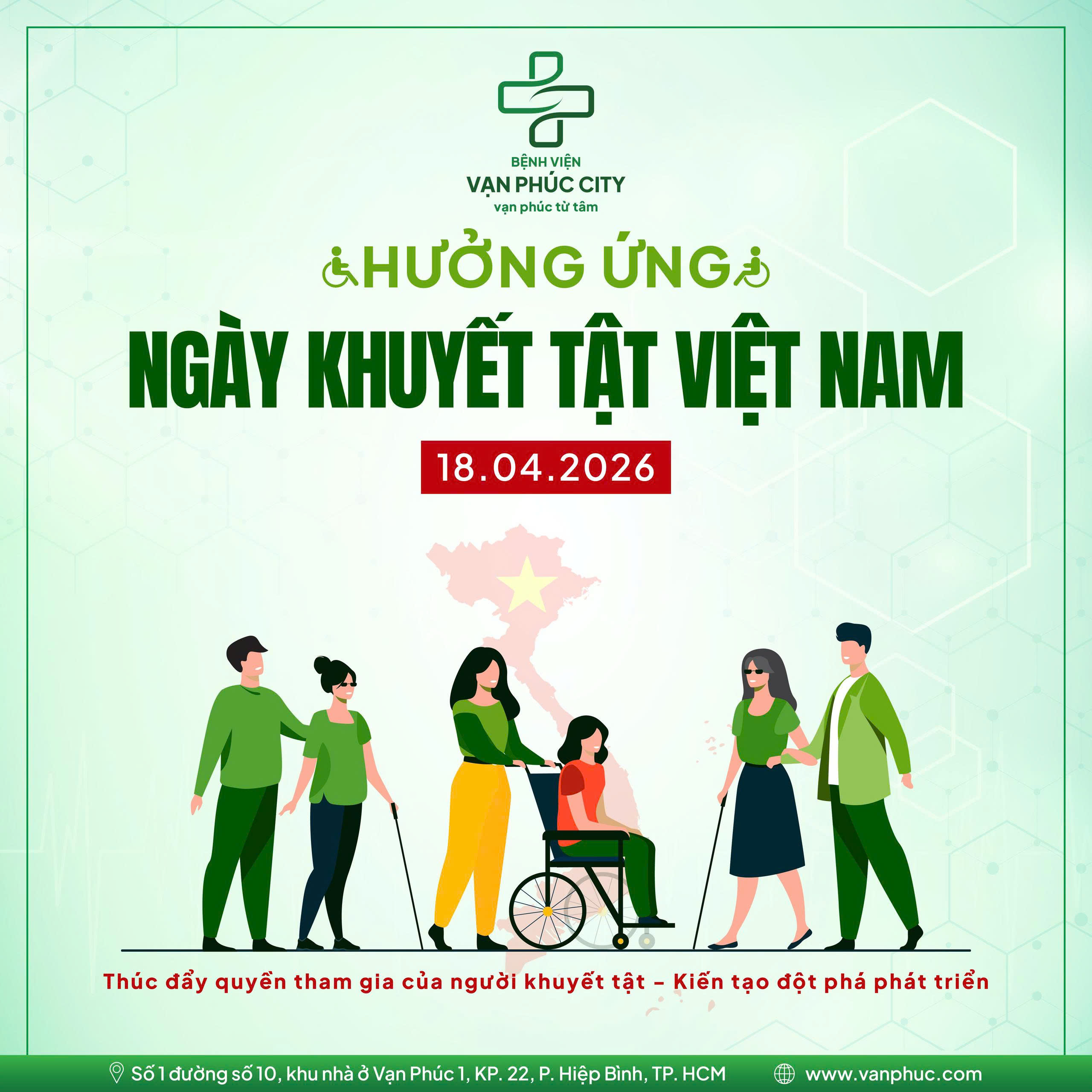 👉 Hưởng ứng Ngày Người khuyết tật Việt Nam, Bệnh viện Vạn Phúc City cùng cộng đồng lan tỏa sự thấu hiểu, tôn trọng và đồng hành, hướng đến một môi trường sống bình đẳng, nơi mỗi cá nhân đều có cơ hội phát huy khả năng và đóng góp theo cách riêng của mình.