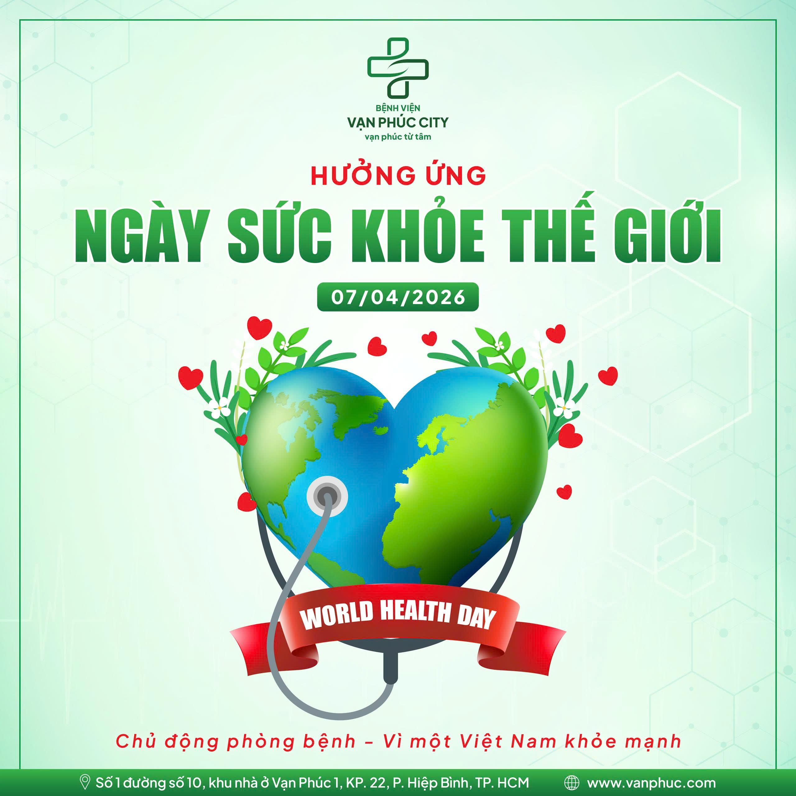 👉 Hưởng ứng Ngày Sức khỏe Thế giới 07/04, Bệnh viện Vạn Phúc City khuyến khích mỗi người dân nên bắt đầu từ những thay đổi nhỏ trong sinh hoạt hằng ngày, cùng xây dựng một cộng đồng khỏe mạnh, an toàn và phát triển bền vững.