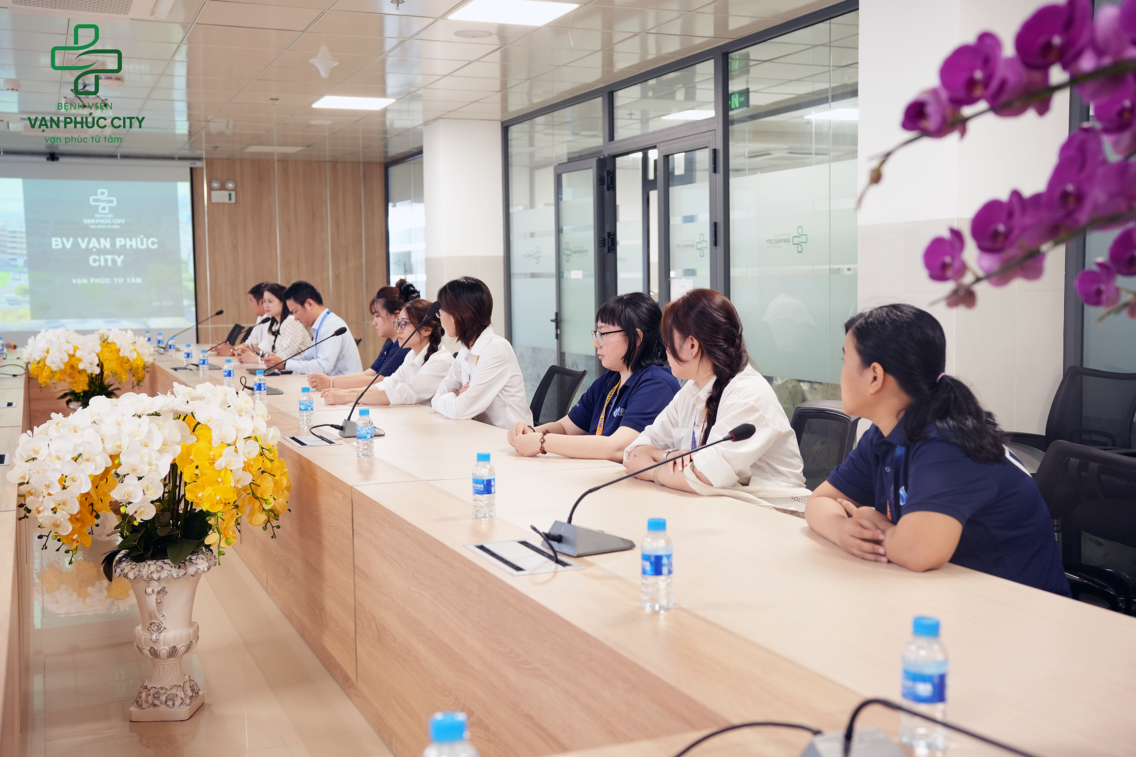📌 Tại chương trình, Ban Giám Đốc Bệnh viện Vạn Phúc City đã giới thiệu tổng quan về bệnh viện, đồng thời chia sẻ các nội dung liên quan đến kế hoạch thực tập, lịch trình và những quy định cần thiết trong quá trình học tập.