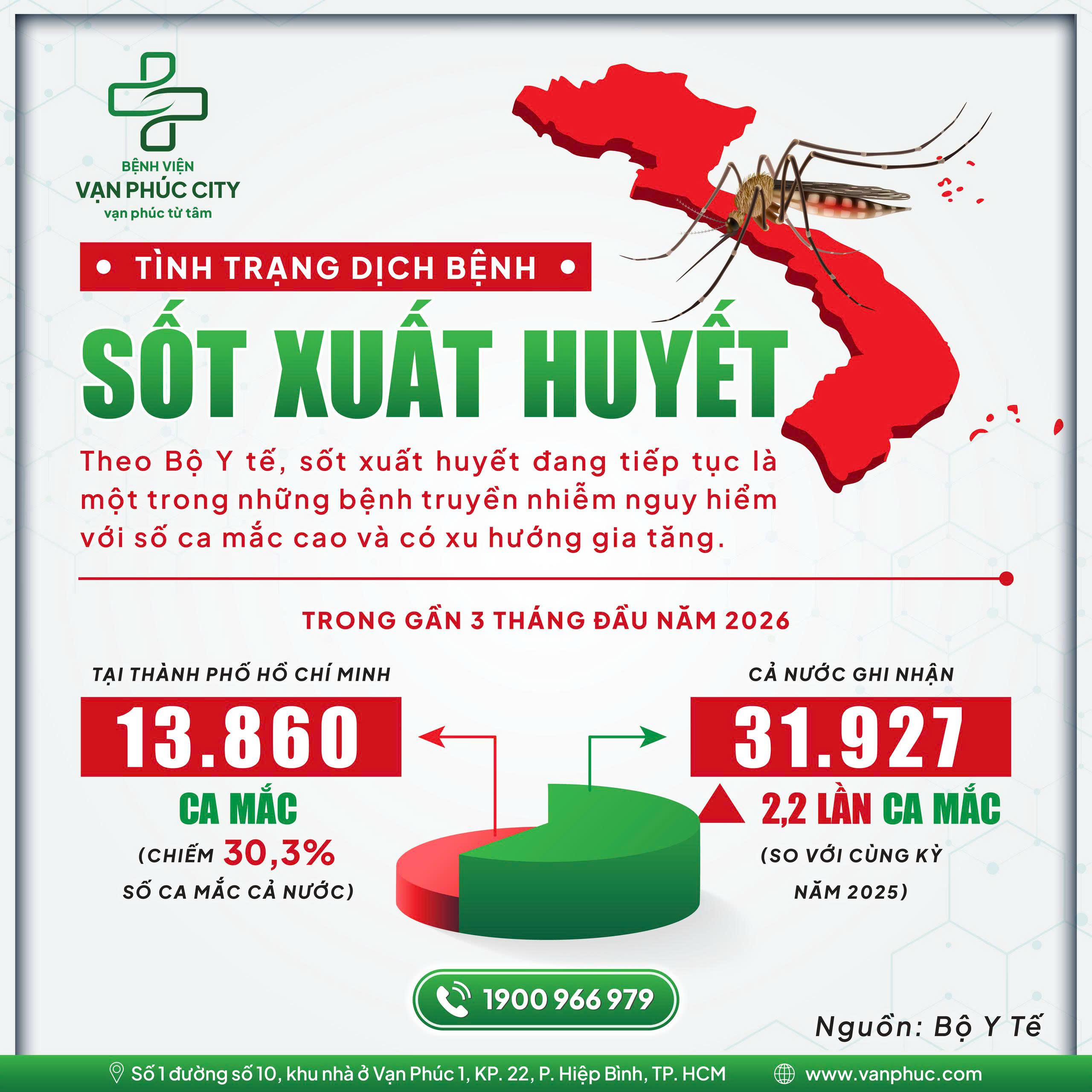🛑 Theo số liệu thống kê từ Bộ Y tế, trong gần 3 tháng đầu năm 2026, cả nước ghi nhận 31.927 ca mắc, với 4 ca tử vong, tăng 2,2 lần so với cùng kỳ năm ngoái. Riêng địa bàn TP. Hồ Chí Minh chiếm 30,3% số trường hợp mắc bệnh cả nước (với 13.860 ca). Đây là tín hiệu cho thấy dịch bệnh vẫn đang tiếp tục diễn biến phức tạp và tiềm ẩn nhiều nguy cơ trong cộng đồng.