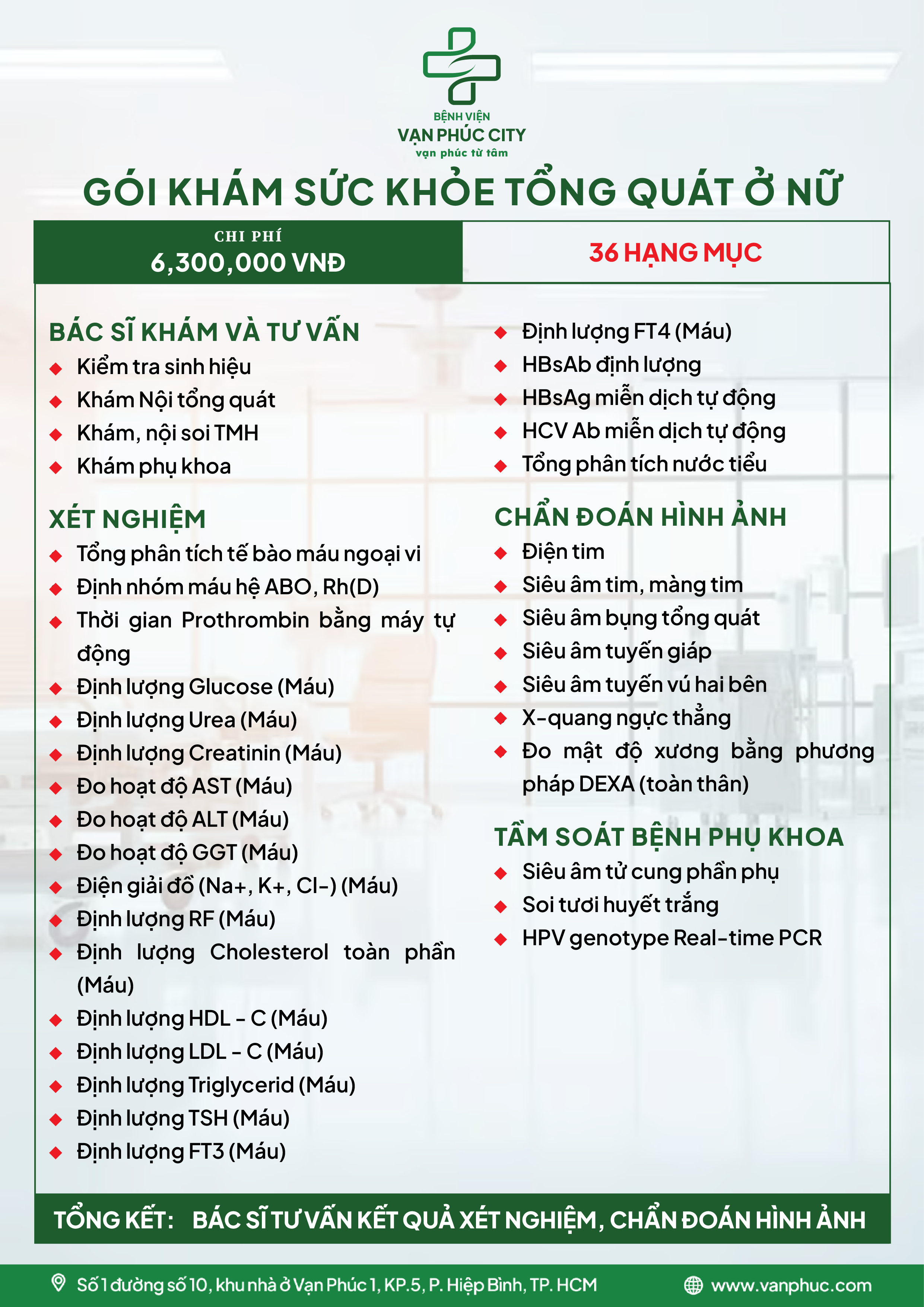 3. Chi tiết gói khám sức khỏe tổng quát ở Nữ tại Bệnh viện Vạn Phúc City