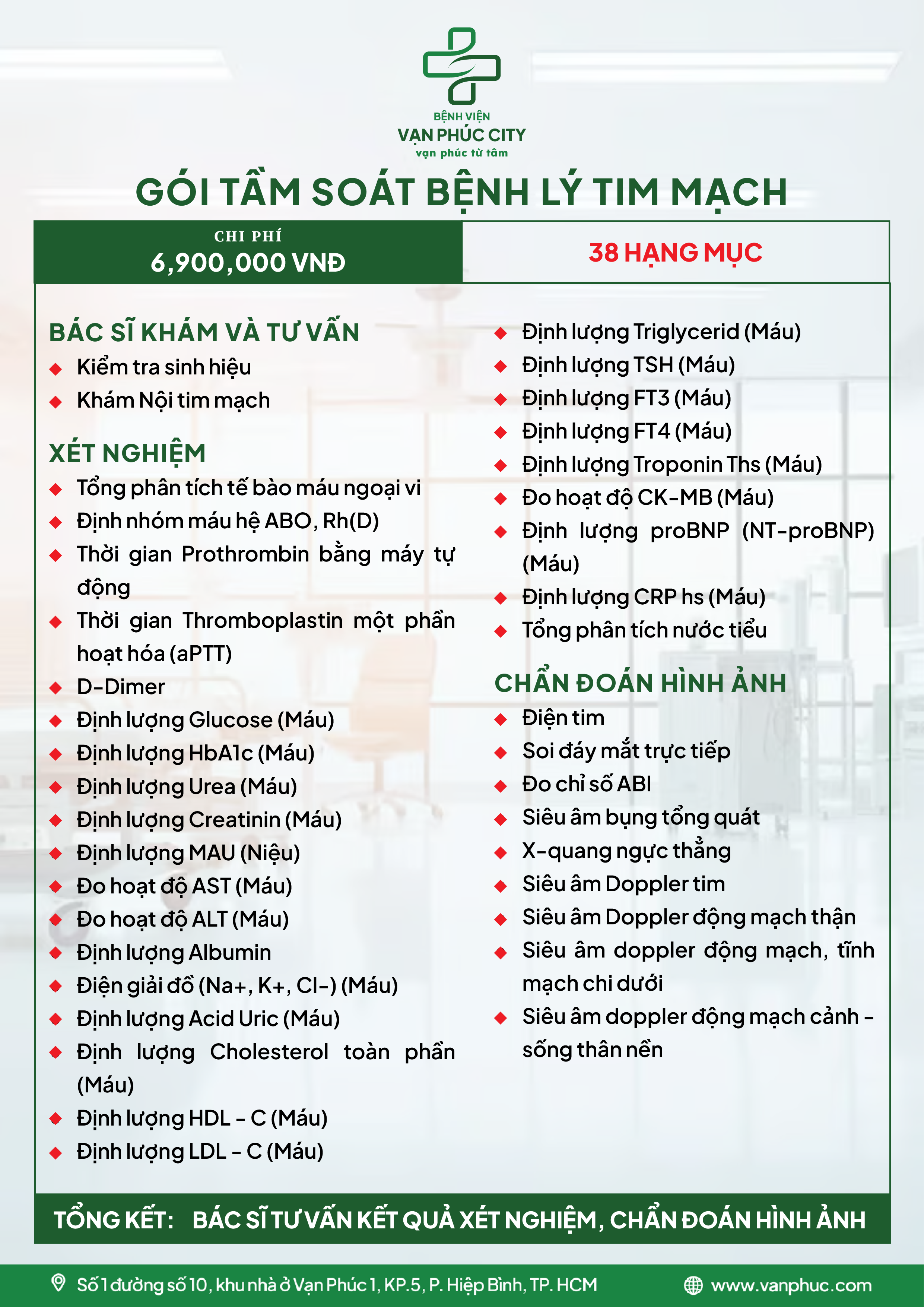 3. Chi tiết gói tầm soát Bệnh lý tim mạch tại Bệnh viện Vạn Phúc City