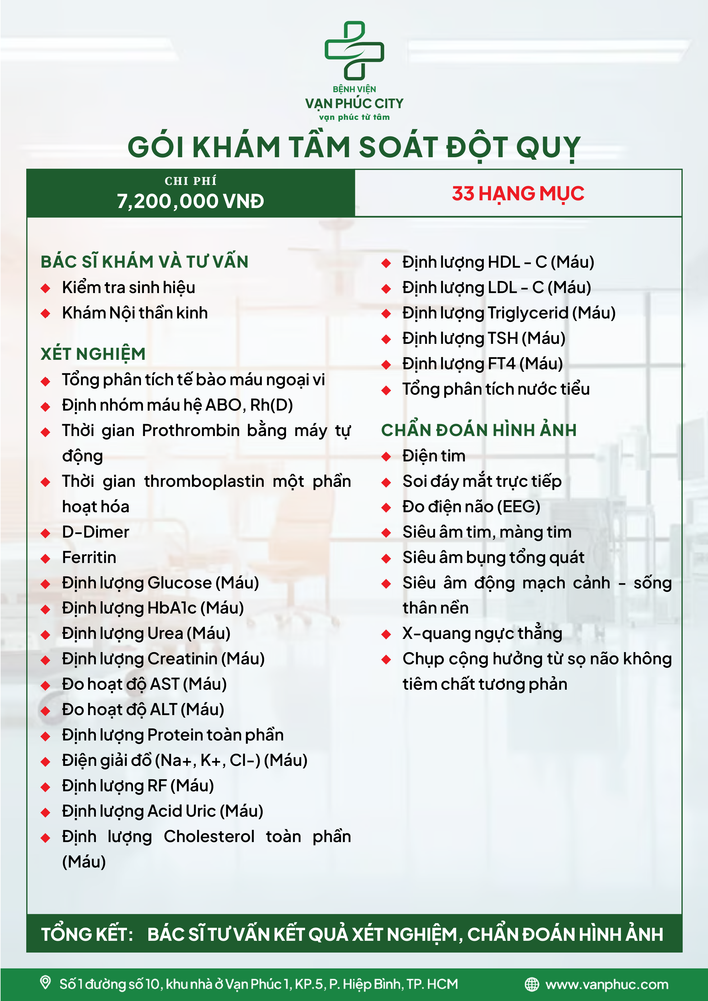3. Chi tiết gói khám tầm soát đột quỵ tại Bệnh viện Vạn Phúc City