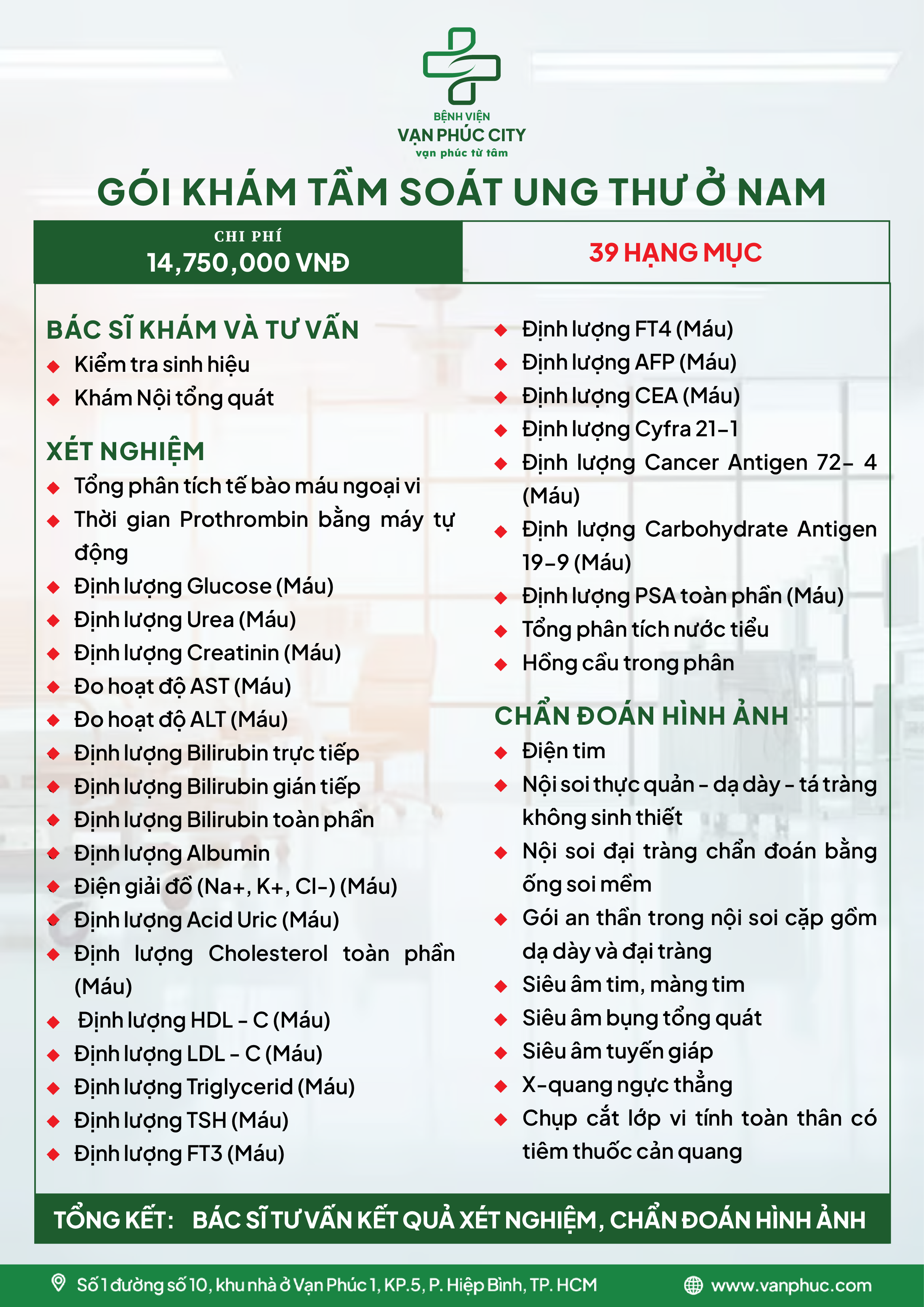 3. Chi tiết gói khám tầm soát ung thư ở Nam tại Bệnh viện Vạn Phúc City