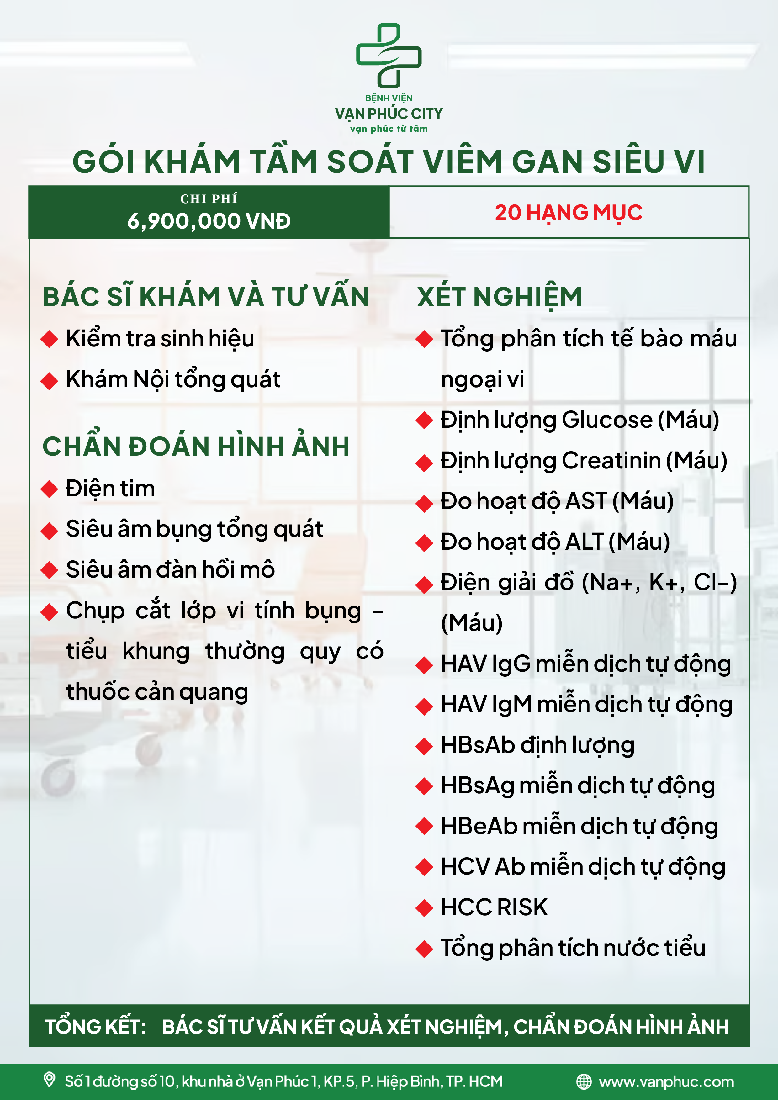 3. Chi tiết gói tầm soát Viêm gan siêu vi tại Bệnh viện Vạn Phúc City