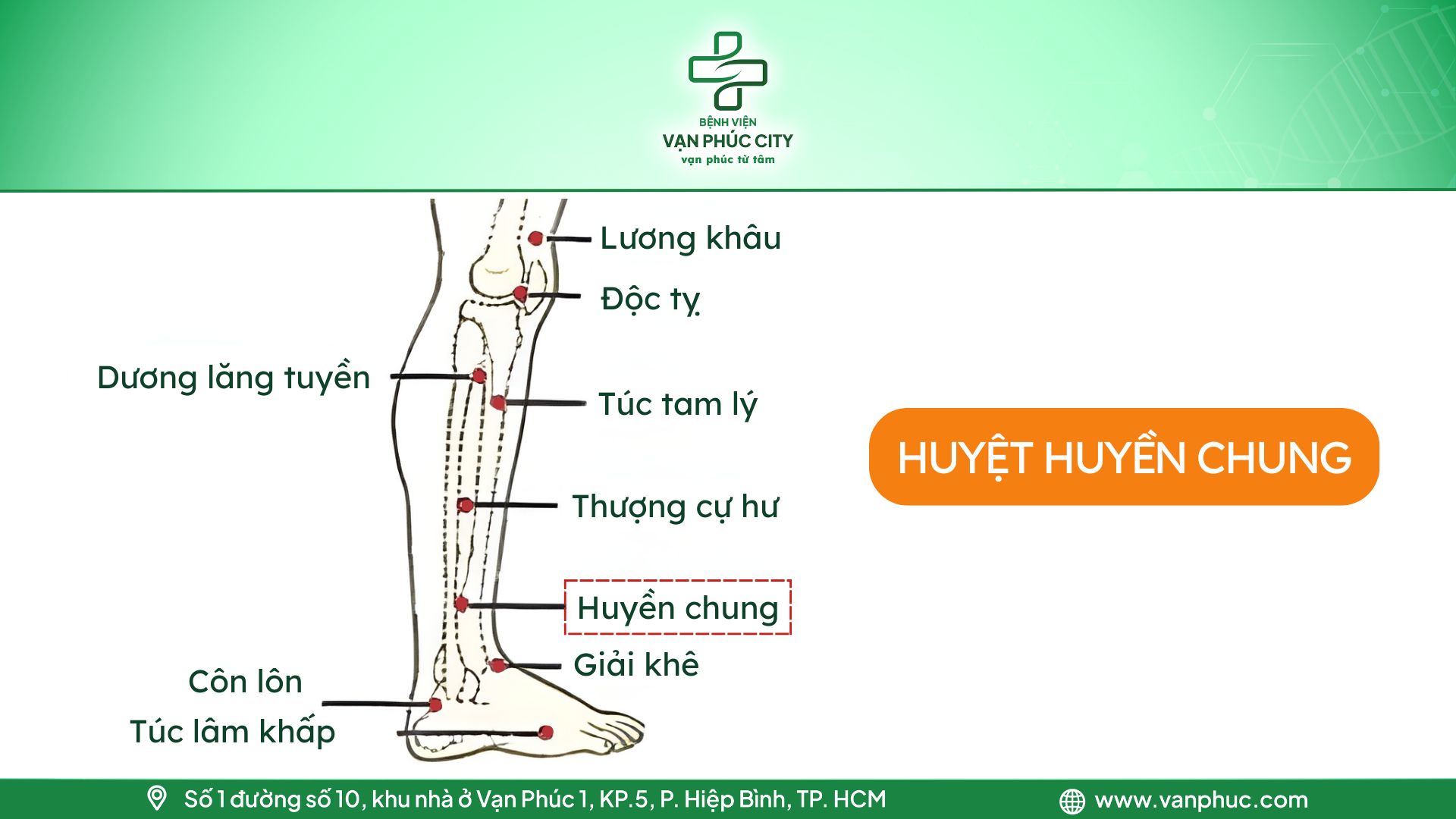 Huyệt Huyền chung là huyệt thứ 39 trên kinh Đởm, do đường kinh này đi qua cổ, huyệt này cũng tương ứng với cổ, vì vậy thường được ứng dụng trong điều trị đau cổ vai gáy. Ngoài ra, huyệt này cũng có tác dụng hỗ trợ giảm đau dây thần kinh tọa, cải thiện tình trạng liệt chi dưới và đau khớp cổ chân.